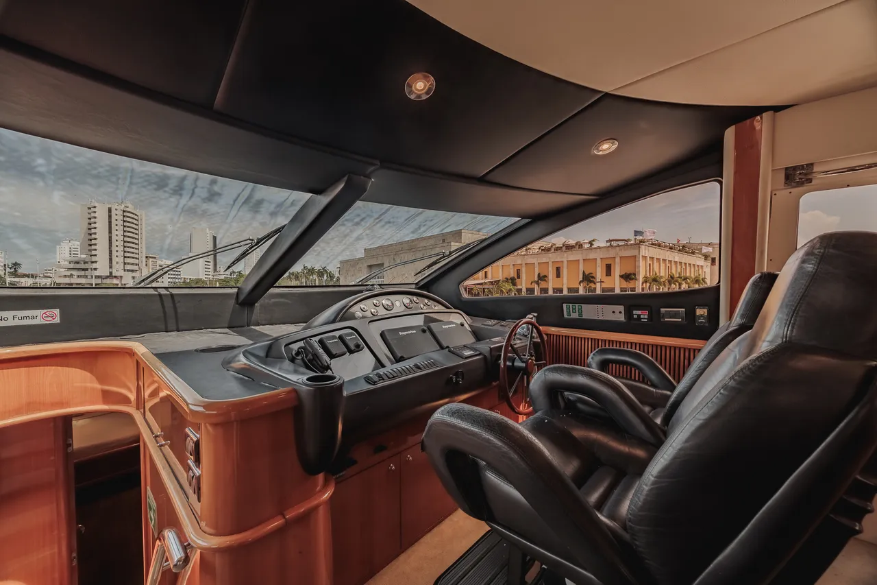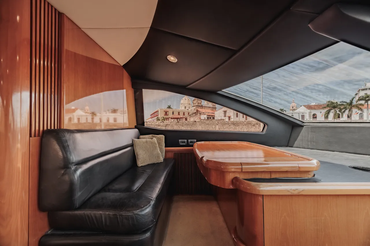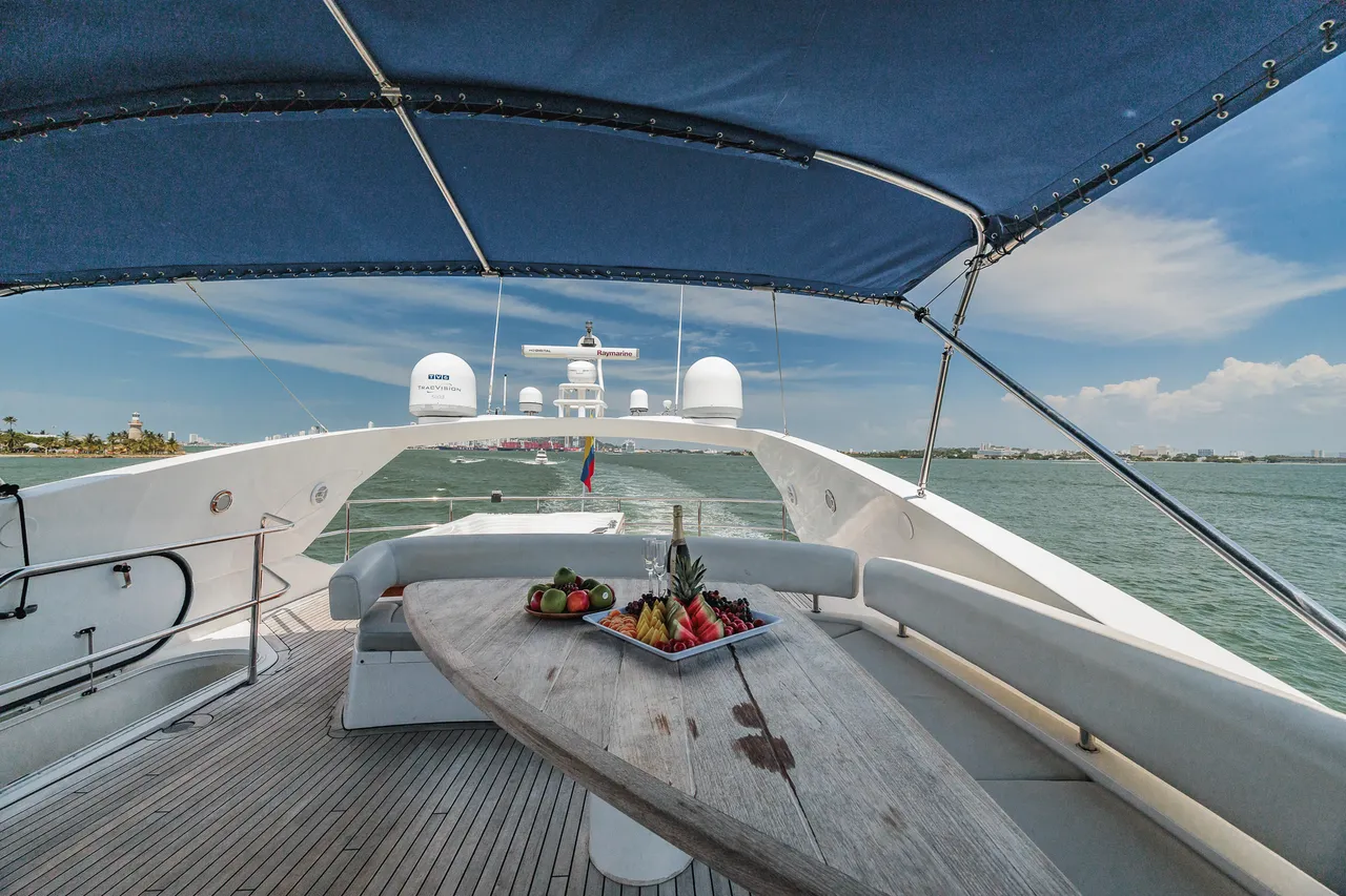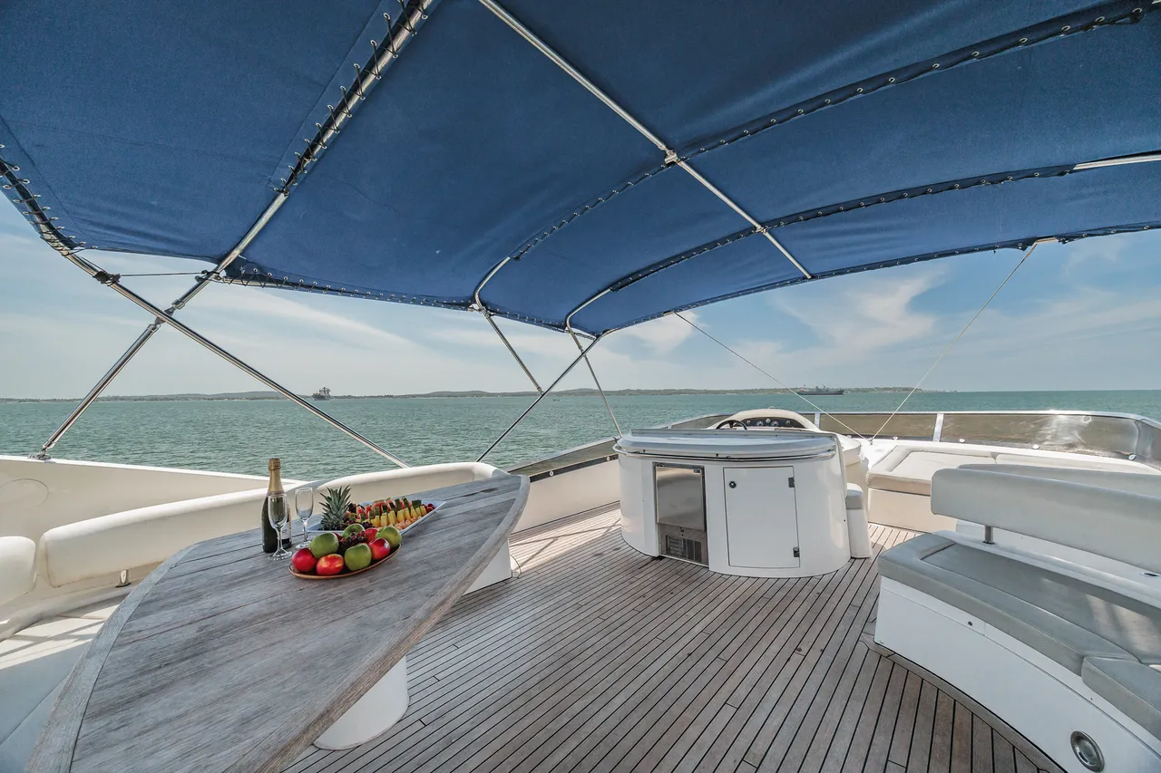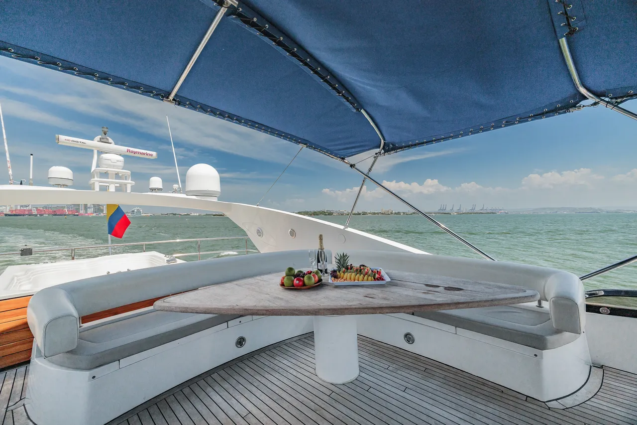 • Flybridge (con vista 360°) con jacuzzi, asoleadora y comedor