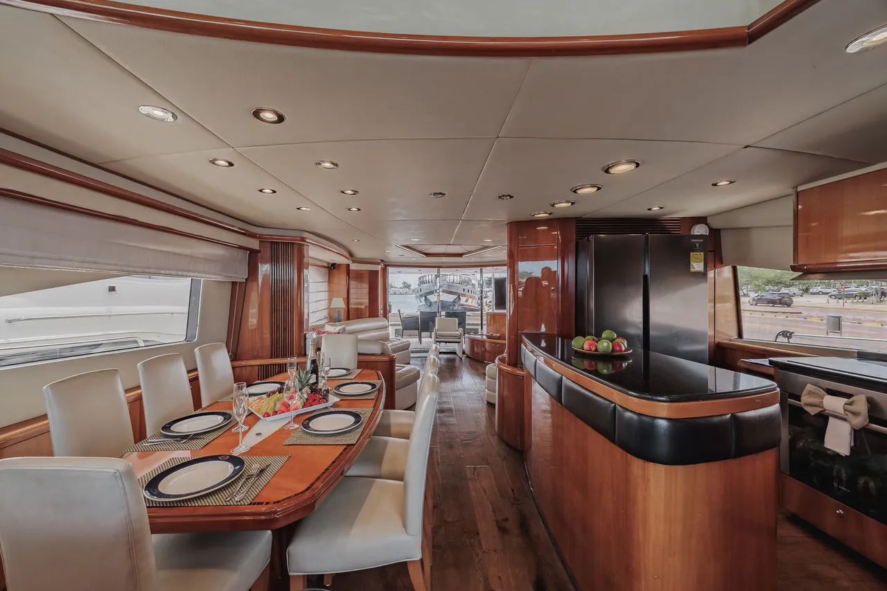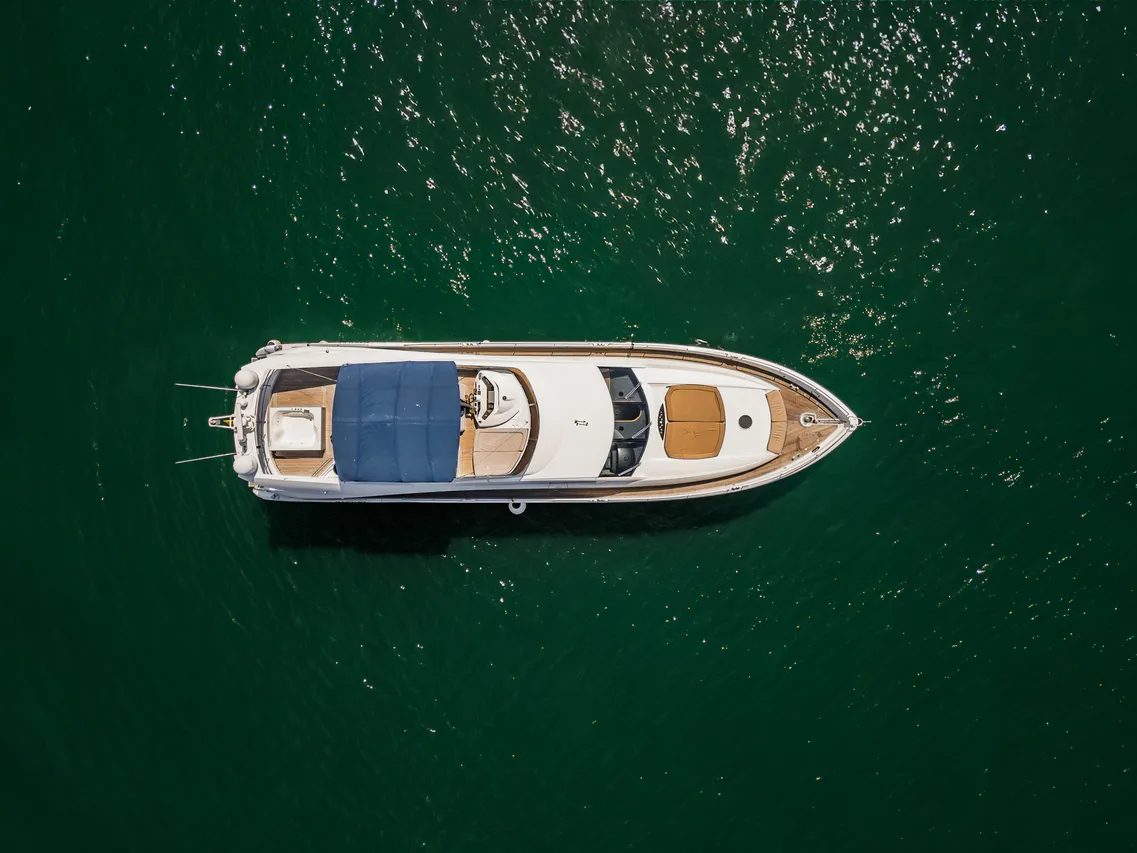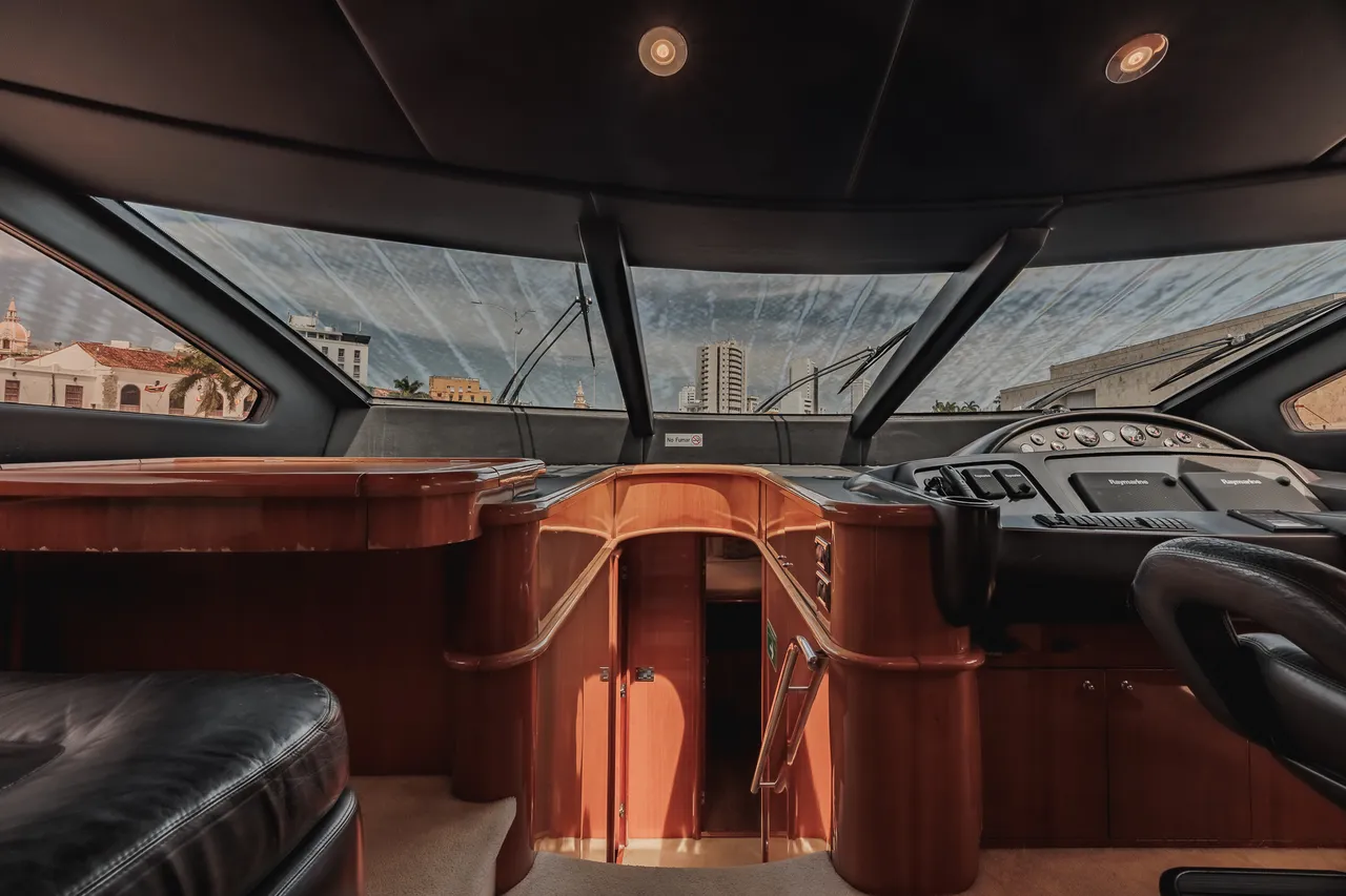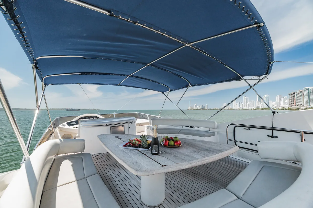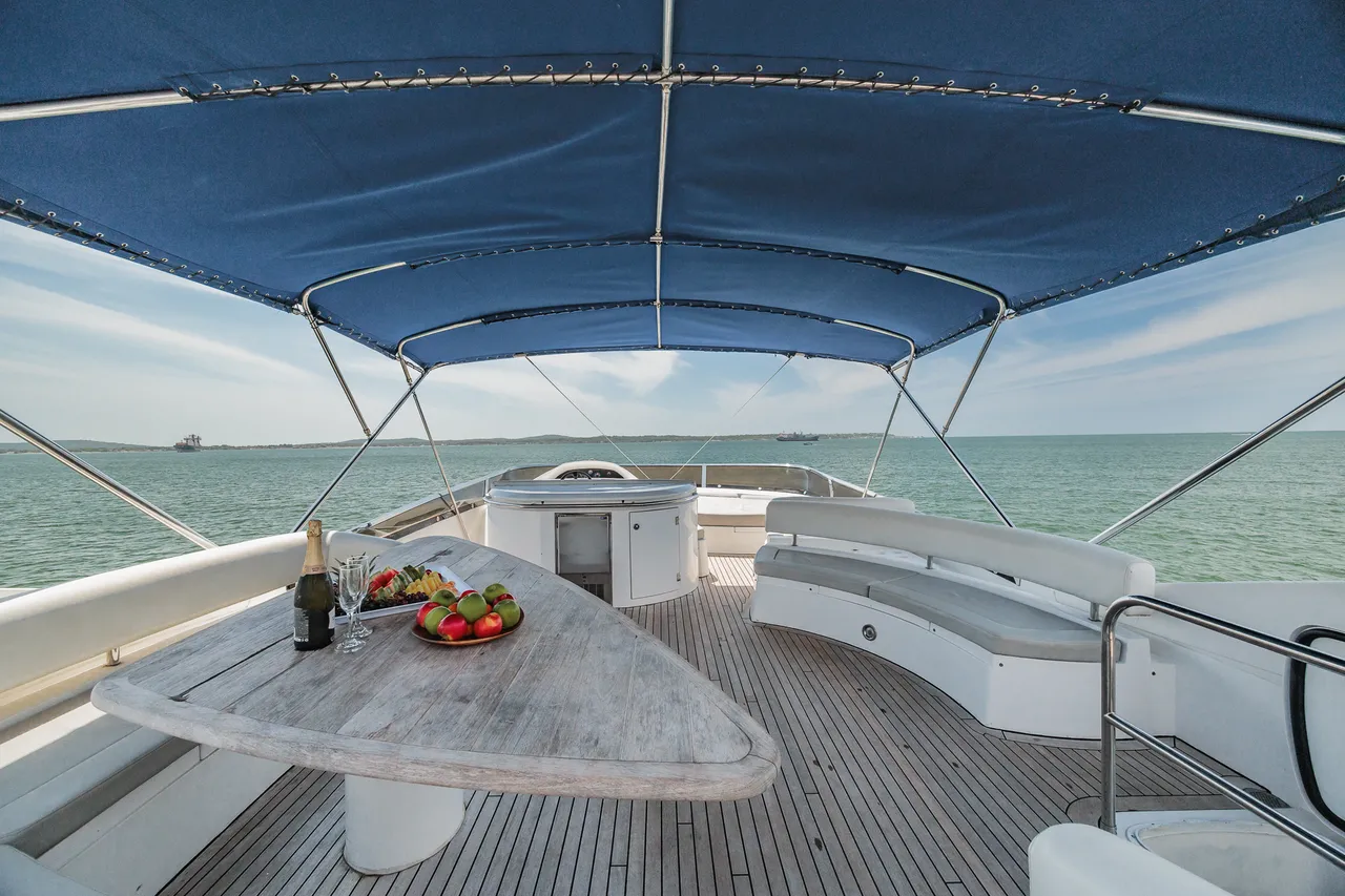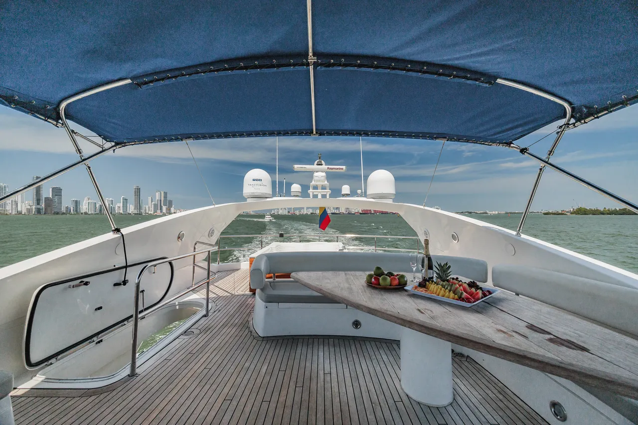 • Flybridge (con vista 360°) con jacuzzi, asoleadora y comedor