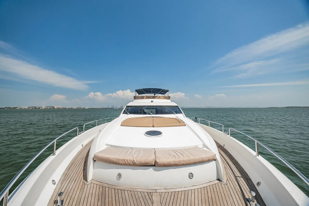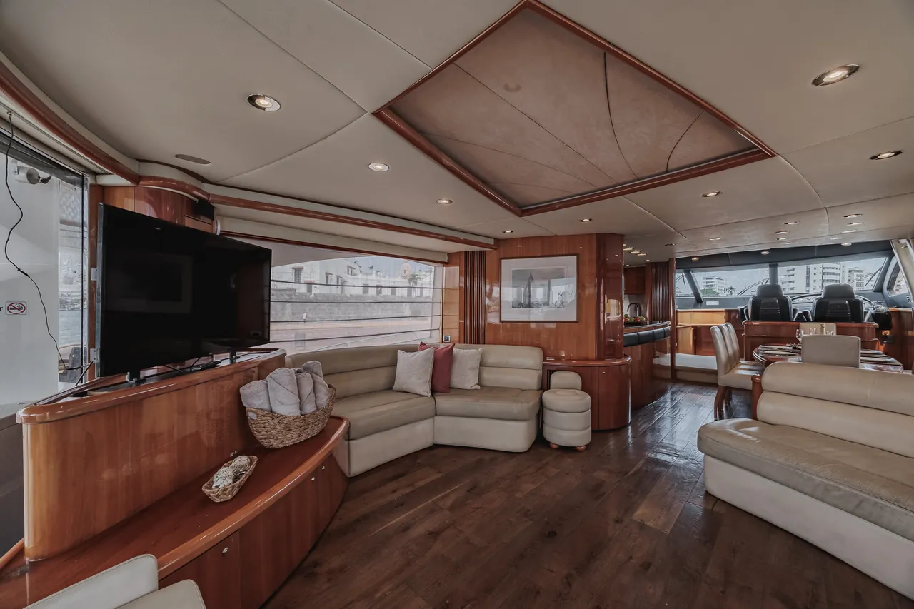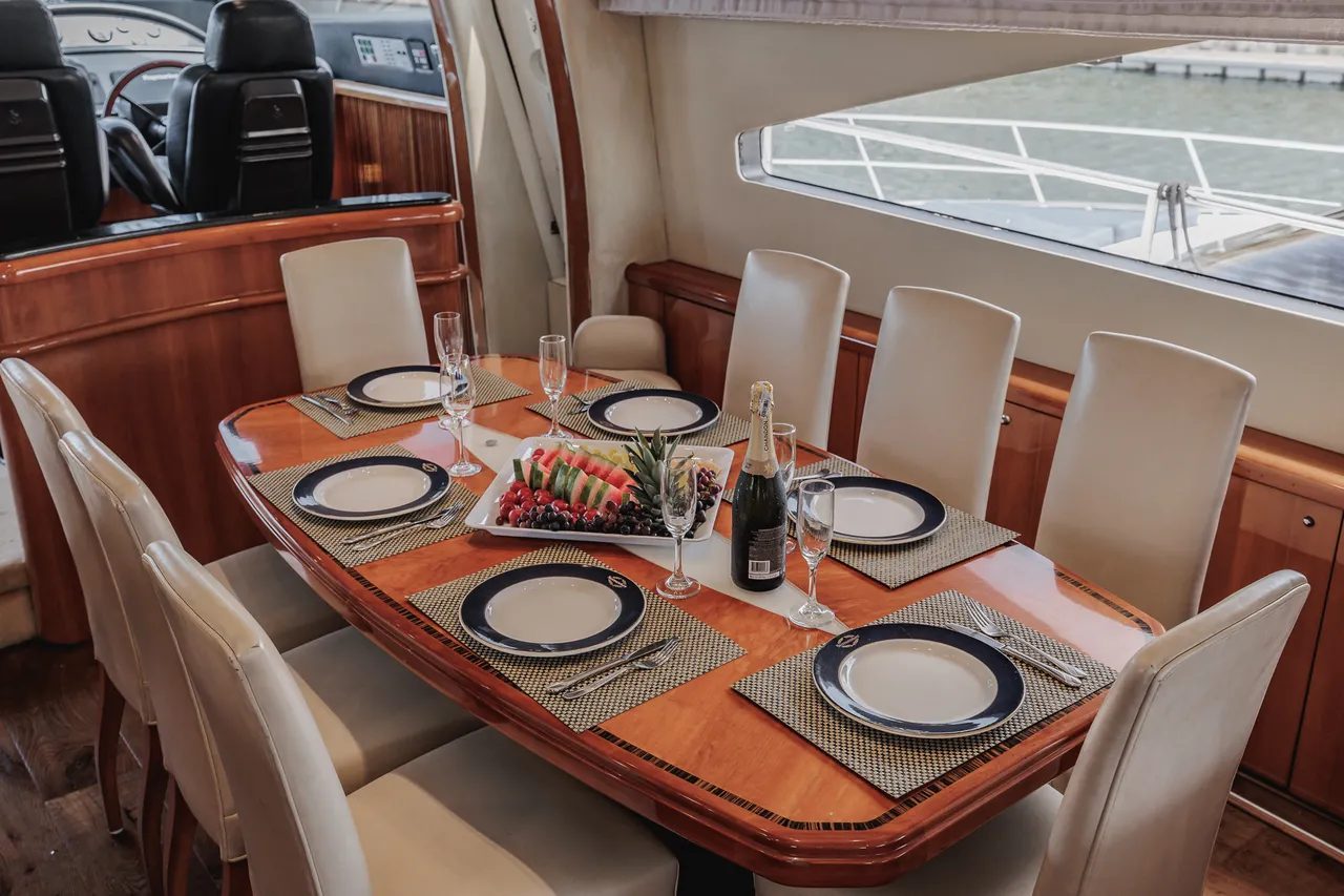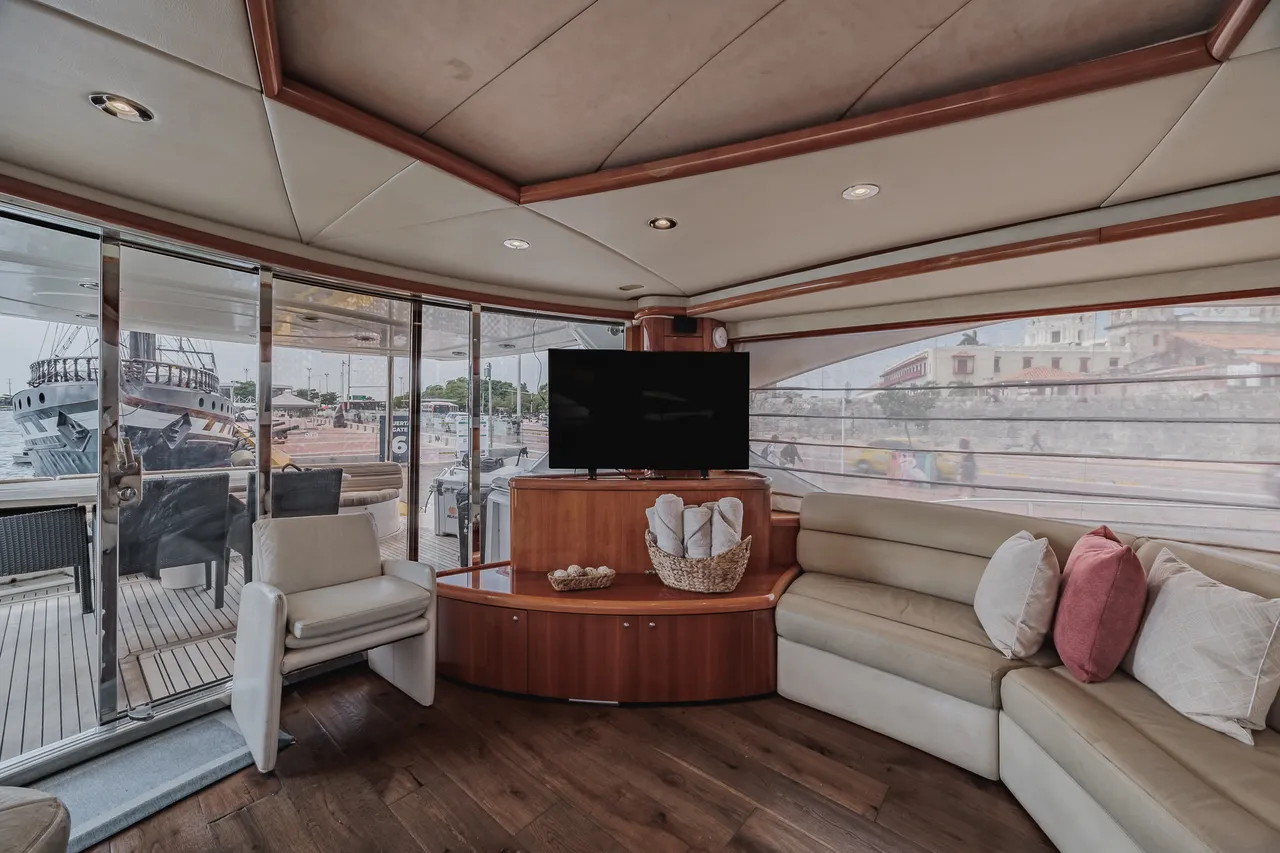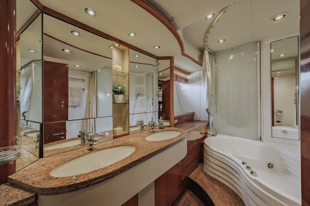 • Flybridge (con vista 360°) con jacuzzi, asoleadora y comedor