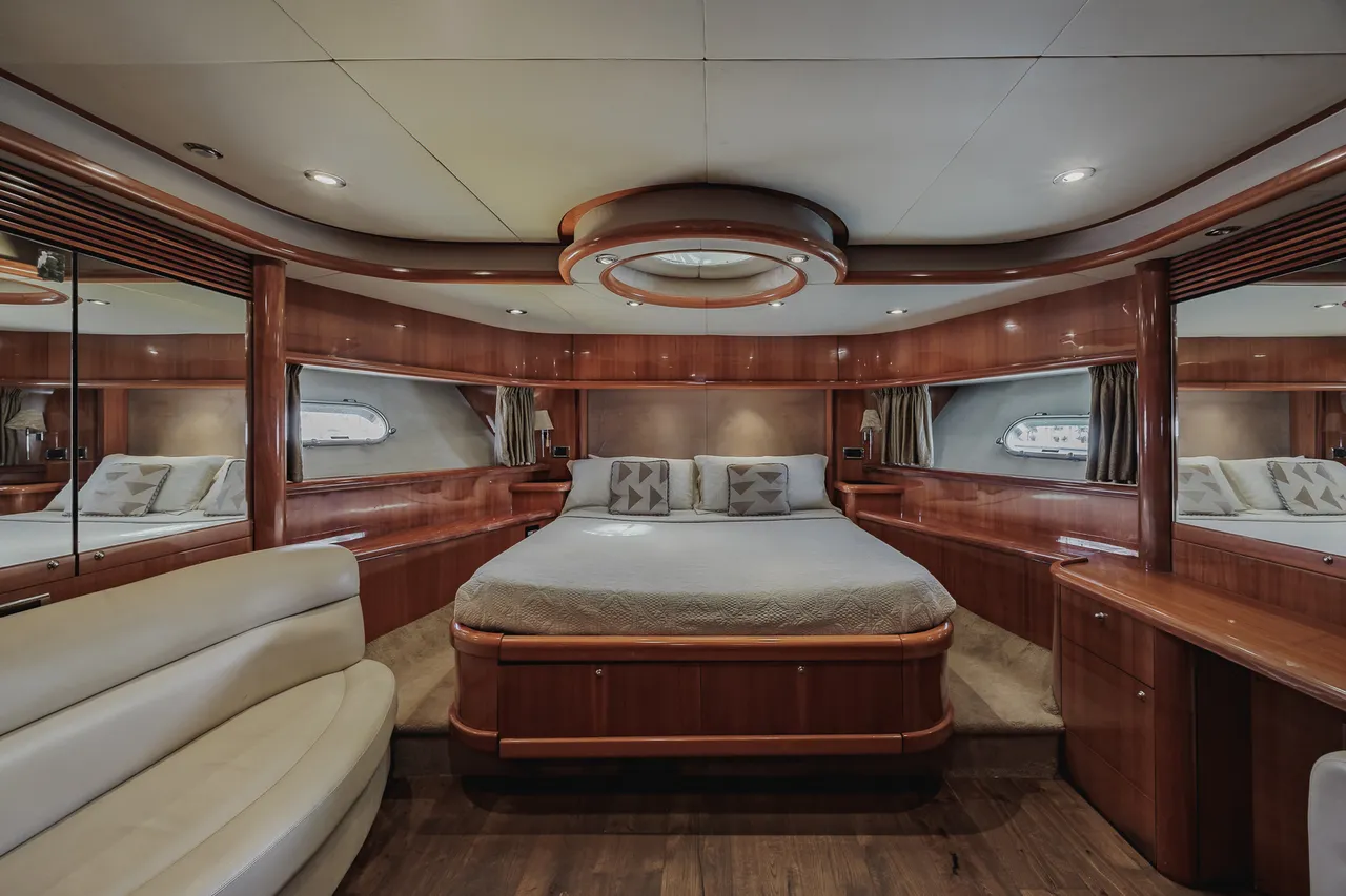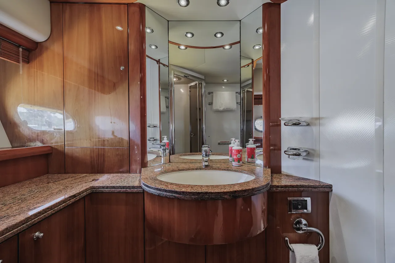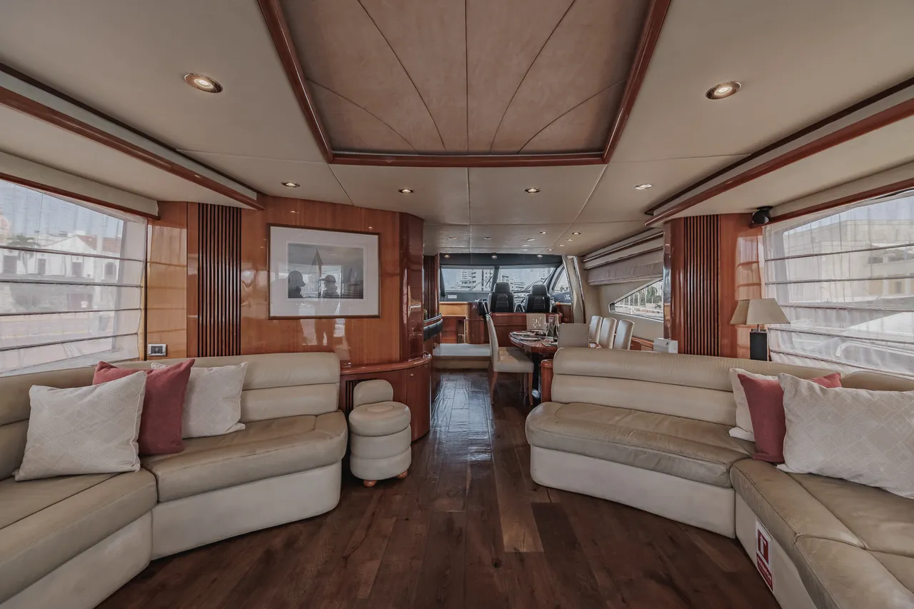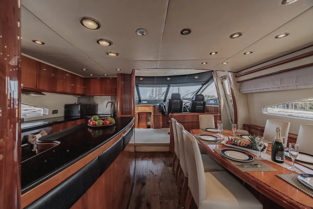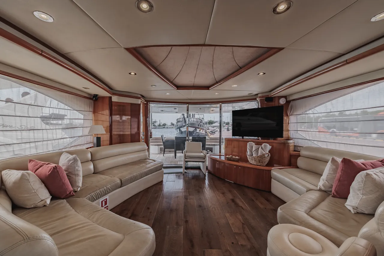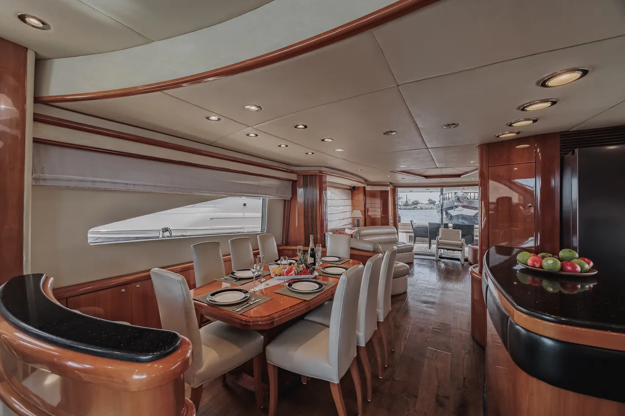 • Flybridge (con vista 360°) con jacuzzi, asoleadora y comedor