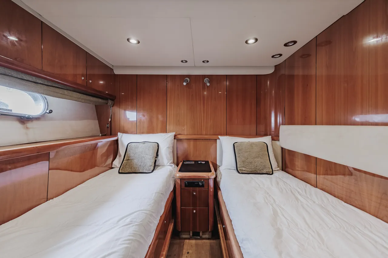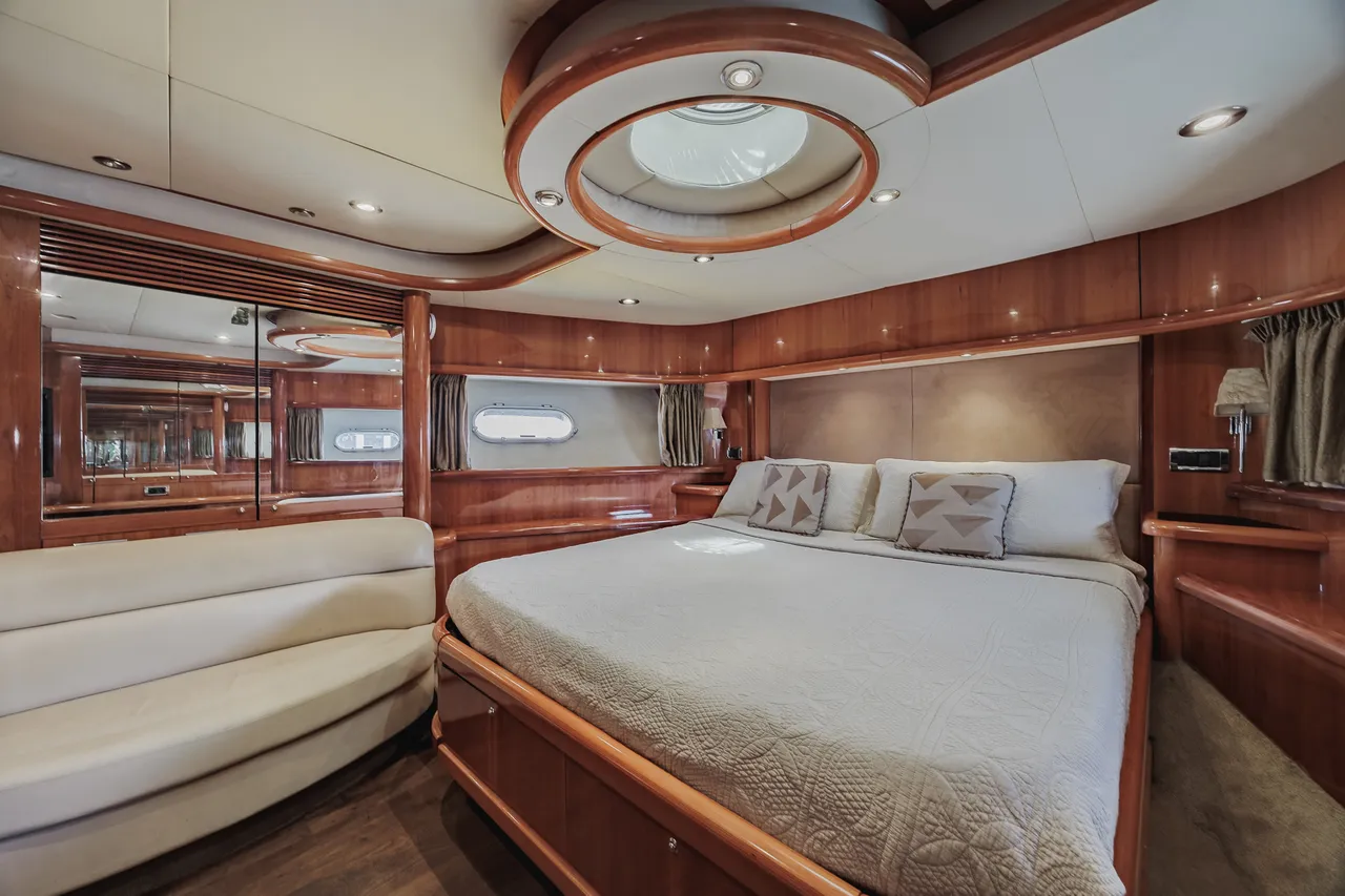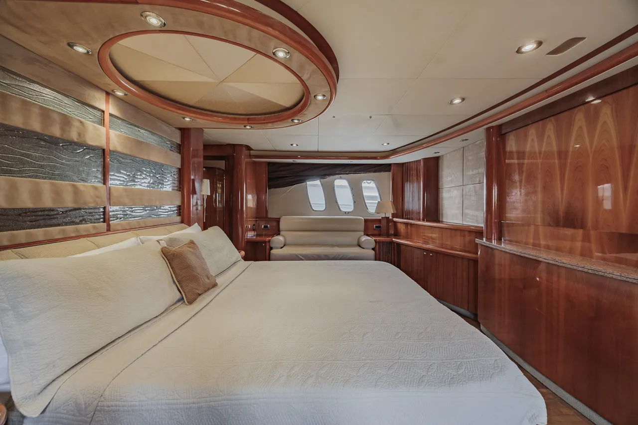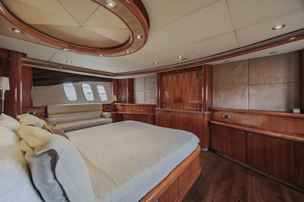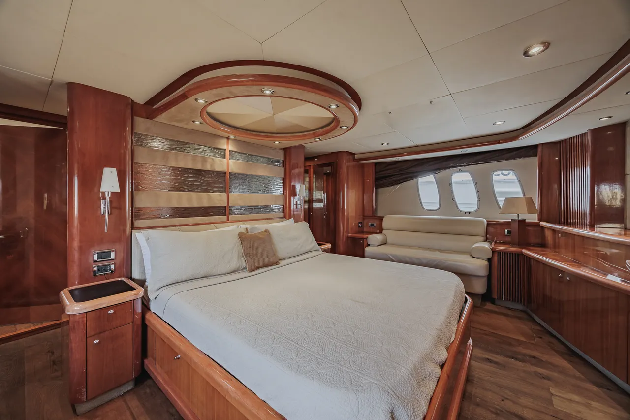 • Flybridge (con vista 360°) con jacuzzi, asoleadora y comedor